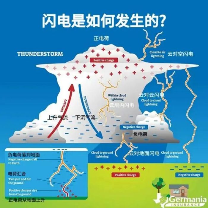 雷電是一種自然現(xiàn)象,發(fā)生在積雨云中,具有高電壓、大電流、強(qiáng)電磁輻射等特征,主要表現(xiàn)形式為閃電,一旦被擊中,會(huì)造成嚴(yán)重的危害和經(jīng)濟(jì)損失。
